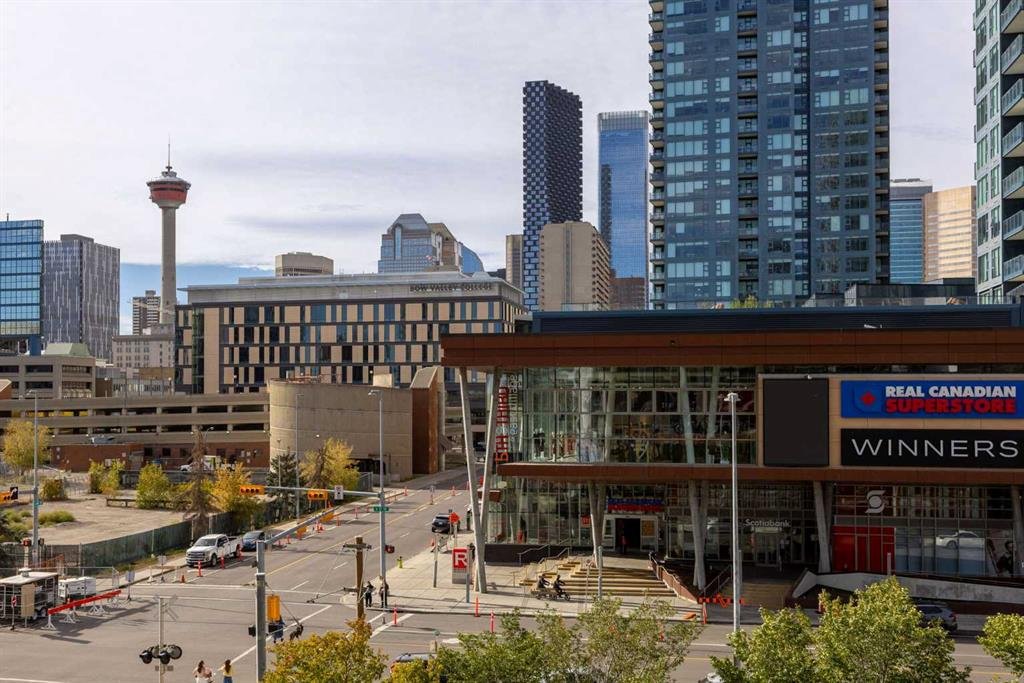 Experience urban sophistication in this 2-bedroom + den East Village condo, where floor-to-ceiling windows frame city skyline views and riverfront pathways are just steps away. The modern kitchen features high-end stainless-steel appliances, granite countertops, and a large breakfast bar, seamlessly connecting to bright living and dining spaces. The primary suite offers a walk-in closet and spa-inspired ensuite, while residents enjoy concierge services, fitness facilities, saunas, party rooms, heated underground parking, and secure storage—modern comfort and convenience in the heart of downtown Calgary.