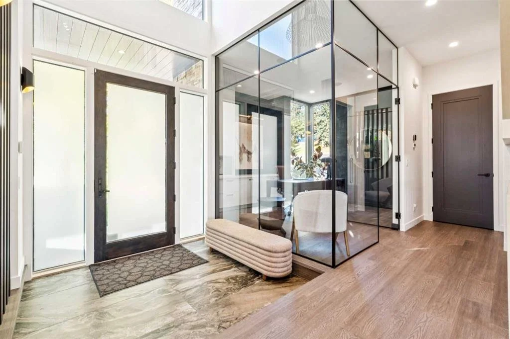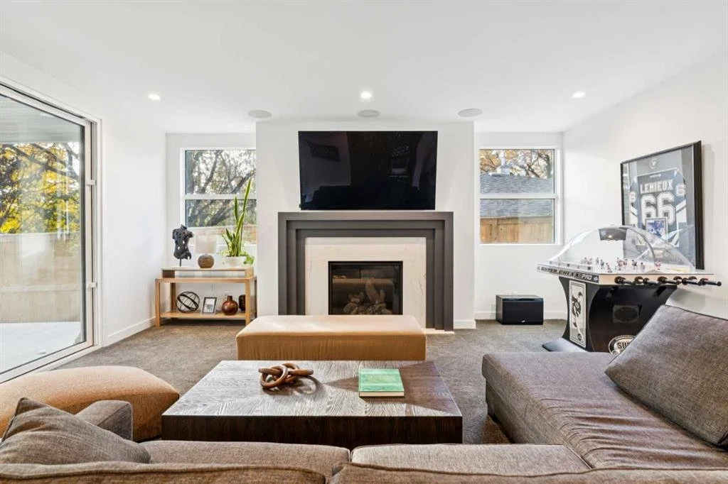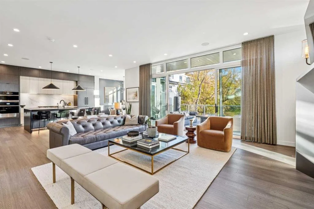 Tucked in an exclusive enclave near Kensington and downtown, this modern architectural residence blends refined design with exceptional craftsmanship. Floor-to-ceiling windows, vaulted ceilings, and premium finishes—including a gourmet kitchen, spa-inspired primary suite, and integrated smart systems—create a seamless living experience. The walkout basement, guest suite, and oversized triple garage with heated floors extend functionality, while a south-facing deck and landscaped yard provide serene outdoor living. Perfectly situated for active, urban lifestyles with quick access to the Bow River pathways, top schools, and downtown, this home defines contemporary luxury.